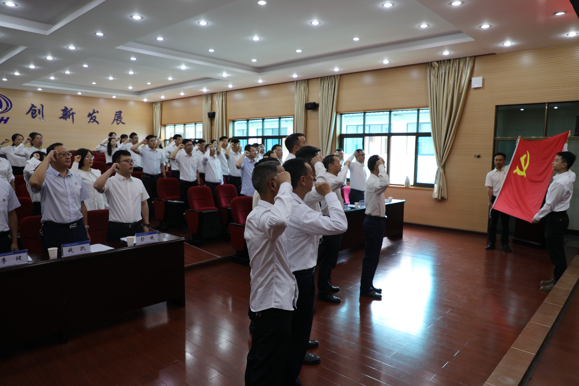 會(huì)議在莊嚴(yán)的國歌聲中拉開帷幕。董學(xué)友帶領(lǐng)全體黨員干部職工重溫入黨誓詞,并向受到表彰的先進(jìn)集體和優(yōu)秀個(gè)人表示崇高的敬意和熱烈的祝賀,向辛勤奮戰(zhàn)在工作崗位上的廣大共產(chǎn)黨員致以衷心的感謝和節(jié)日的問候。