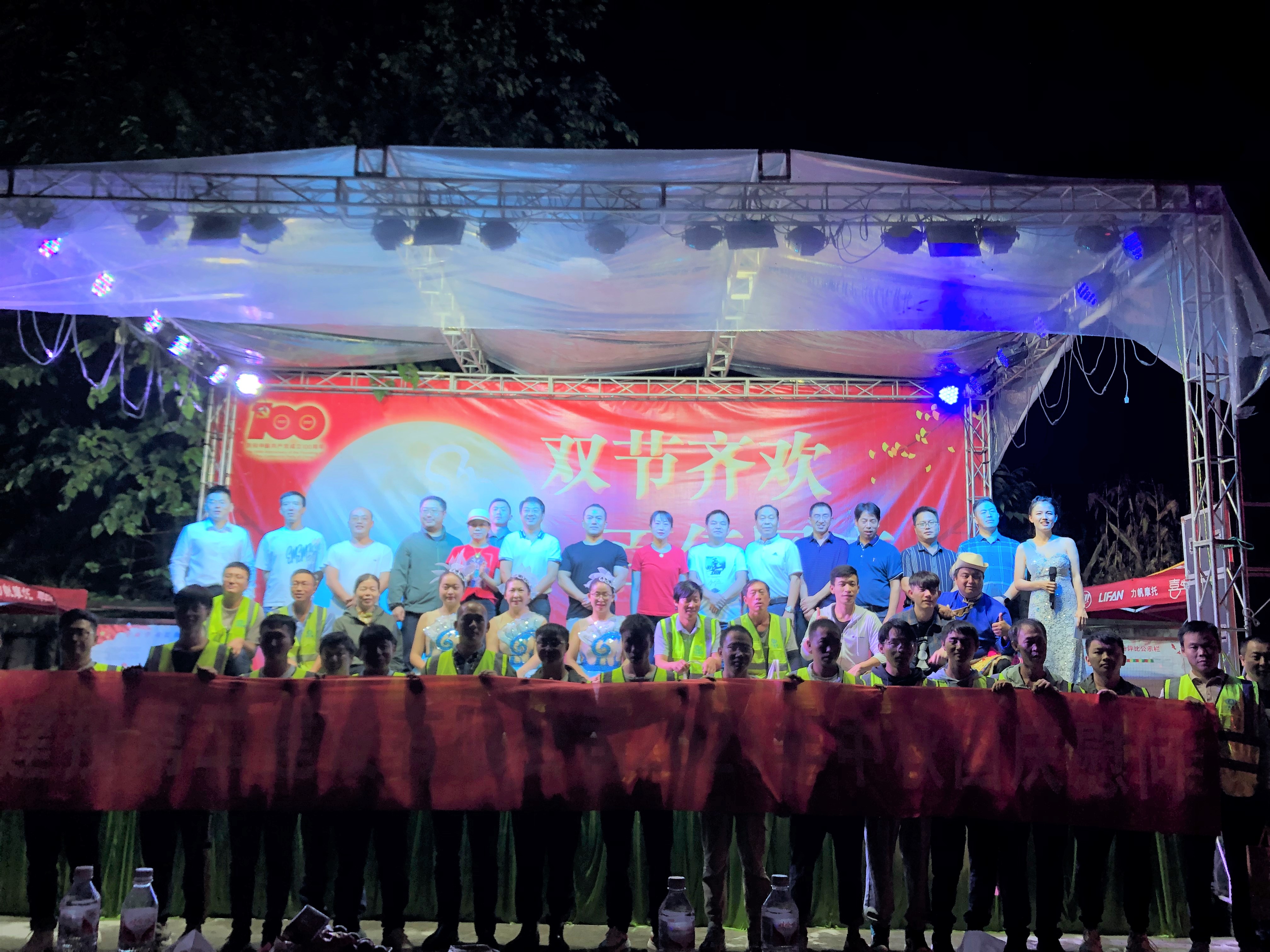 尖山鄉(xiāng)政府主要領(lǐng)導(dǎo)、項目全體職工和部分農(nóng)民工代表參加了晚會活動。晚會表演包含了手鼓表演《我的小寶貝》《一瞬間》,爵士舞《3189》,詩朗誦《用忠誠和擔(dān)當(dāng)擦亮胸前的黨徽》等9個節(jié)目,2個互動游戲和送慰問品環(huán)節(jié)。晚會在大家的歡笑聲中圓滿結(jié)束。