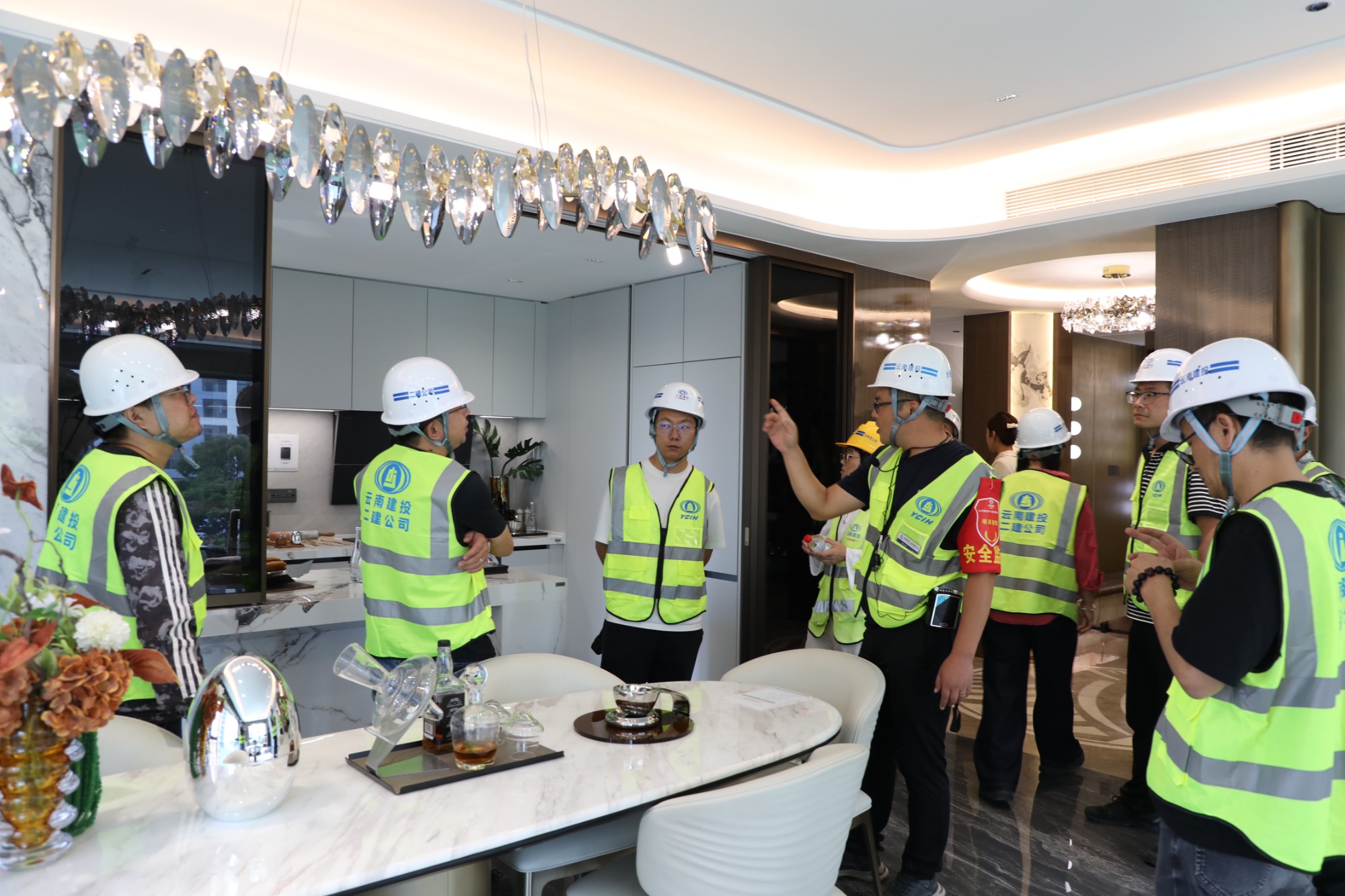 活動(dòng)還組織開展了質(zhì)量標(biāo)準(zhǔn)化工地觀摩活動(dòng),與會(huì)人員在工作人員的帶領(lǐng)下依次觀摩了項(xiàng)目宣傳展板、安裝展示區(qū)、地坪樣板展示區(qū)、工序樣板展示區(qū)、精裝樣板房展示區(qū)。
